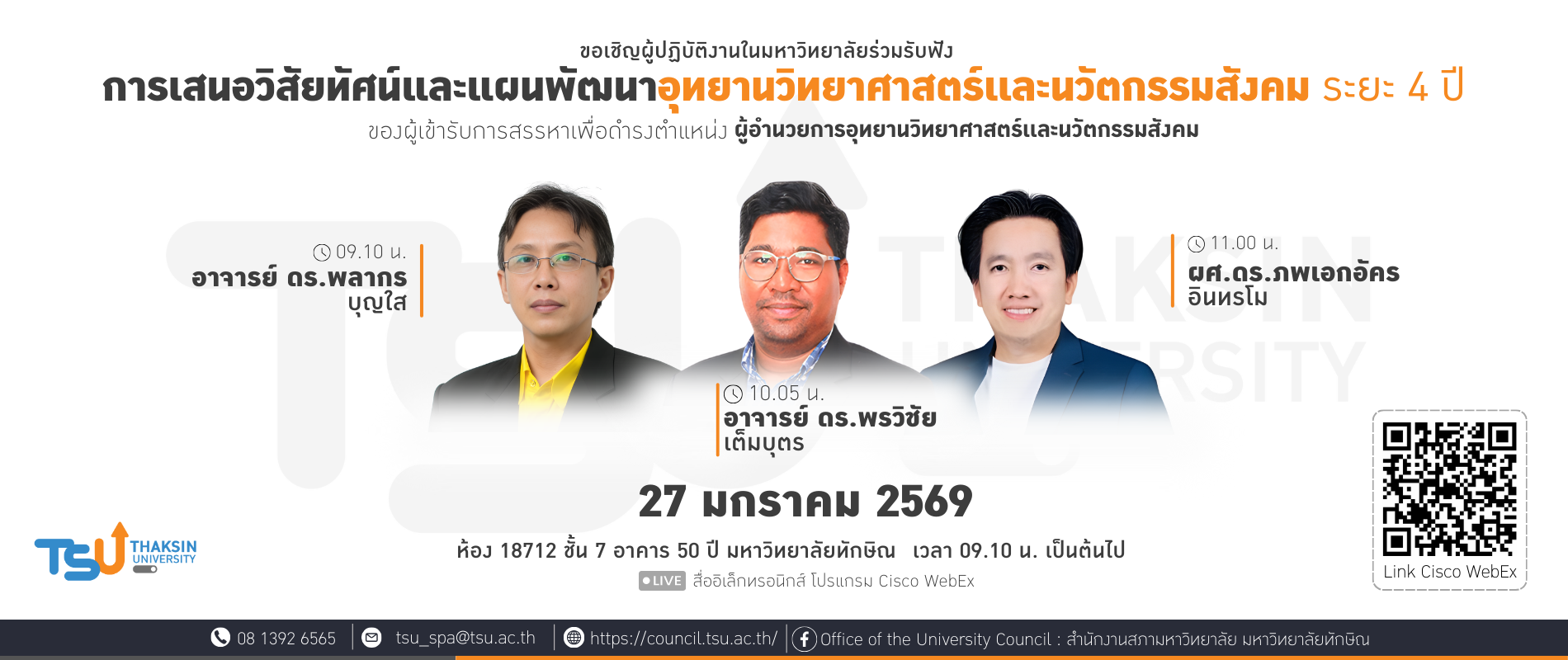 การเสนอวิสัยทัศน์และแผนพัฒนาอุทยานวิทยาศาสตร์เเละนวัตกรรมสังคม ระยะ 4 ปี ของผู้เข้ารับการสรรหาเพื่อดำรงตำแหน่งผู้อำนวยการอุทยานวิทยาศาสตร์เเละนวัตกรรมสังคม