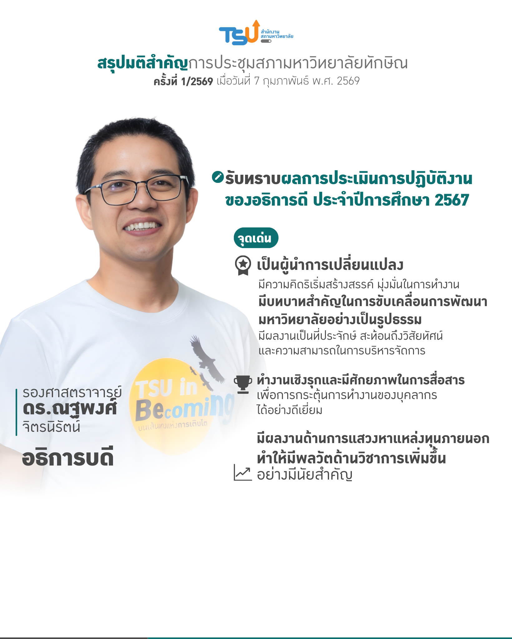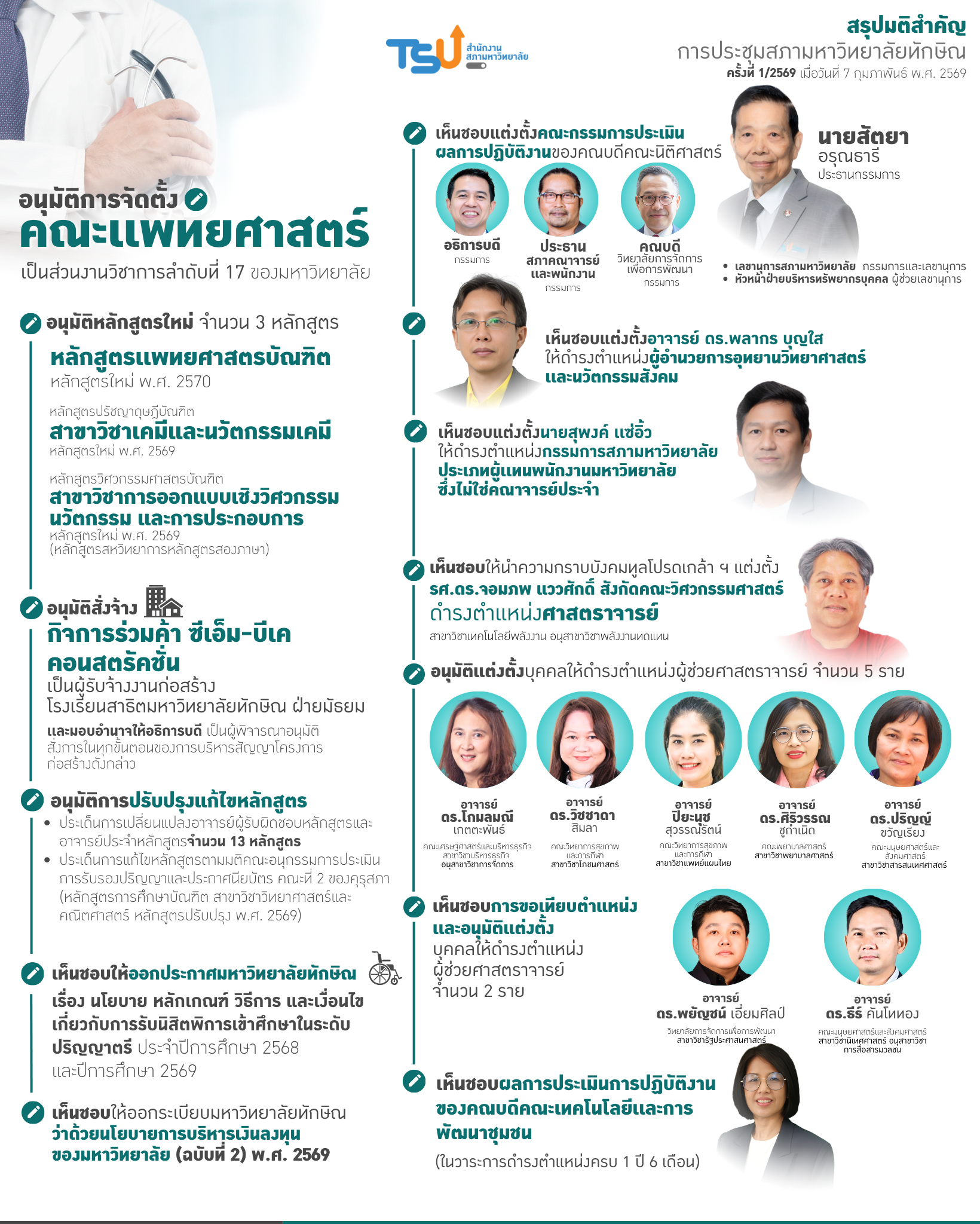 มติสำคัญการประชุมสภามหาวิทยาลัย ในการประชุมครั้งที่ 1/2569